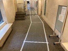 また、環境面だけでなく、やぶれにくく、雨の日でも滑りにくいなど、耐久性や安全性にも優れます。共用廊下の床などにも馴染む色合いで、工事中でもマンションの美観を維持します。