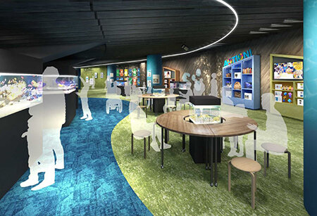 ■新ワークショップスペースでいきものを知る・学ぶ多彩な体験を提供 レイアウト変更が自由自在なテーブルとイスを採用し、お子さま向けのワークショップだけでなく、特別講義や大人向けのワークショップなど、イベントにあわせた空間づくりが可能で、これまで以上に幅広い多種多様な体験をご提供していきます。 |